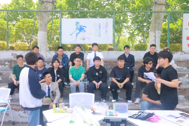 首先进行的是破冰游戏——桃花朵朵开。在此环节中,学生在操场指定区域围成一个大圈站立并顺时针跑动起来。主持人站在队伍里面,大声说:“春天来,春天来,桃花朵朵开。”学生齐声回应:“开几朵?”主持人随机说出数字(如“4朵”),学生需迅速按对应人数抱成一团,落单或人数不符的小组视为失败。落单学生现场化身歌手,动情地为大家演唱薛之谦的《演员》。
