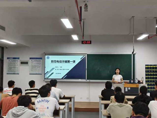 专题会后,各班级迅速响应,以主题班会形式开展班级“反诈第一课”。辅导员、班主任通过播放反诈宣传视频、分享身边真实案例、组织互动问答等方式,让学生直观感受诈骗危害。“之前总觉得诈骗离自己很远,这次班会让我意识到,哪怕是一条陌生短信、一个未知好友申请,都可能是诈骗陷阱。”2025级新生小李在班会后说道。截至9 月 30 日,机电学院已实现“学院 - 班级” 两级 “反诈第一课” 全覆盖,累计开展专题宣讲50余场,覆盖学生万余人。