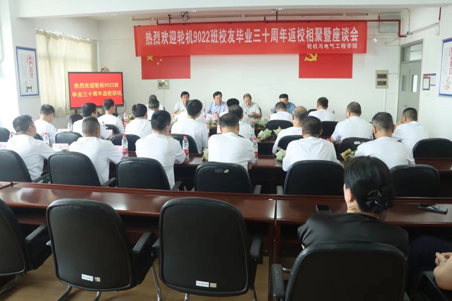 最后,校友们齐聚海涵楼1001举行了座谈会,由机电学院院长孙长飞主持,活动在一段老照片短视频中拉开帷幕,随后机电学院党总支书记关工委主任王涛对校友们的到来表示由衷的欢迎,校友代表朱长虎、武志文、顾建明和王兴林纷纷发表感言,重温学校记忆,畅谈人生经历,表露真情实意,之后班主任喻诗祥老师也给校友们带来了别具意义的班会,现场气氛活跃,交谈甚欢,校友们一起在横幅上签名,在热情的问候与深切的交流中结束了座谈会。会后,全体参会老师和校友在海立楼前合影留念。