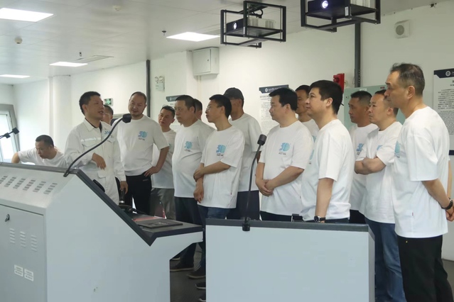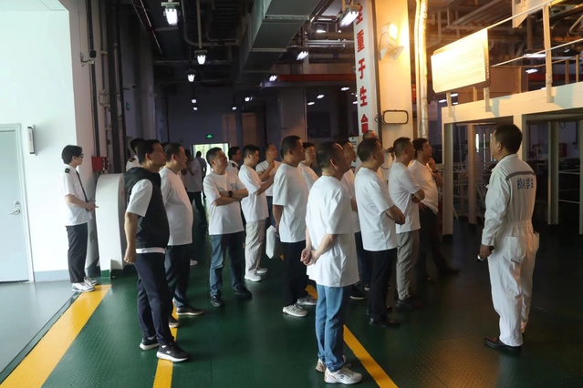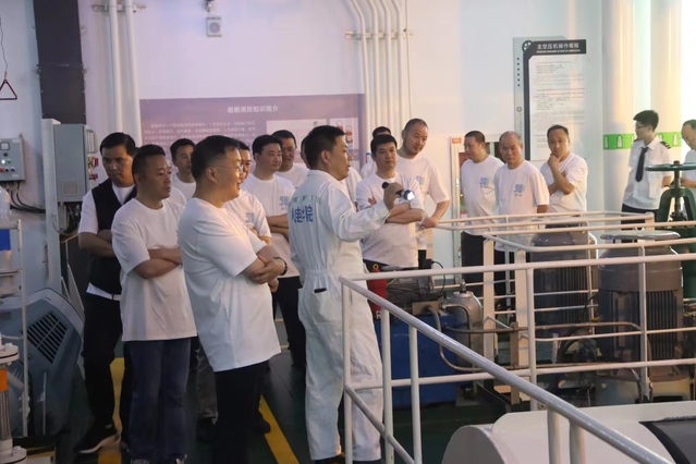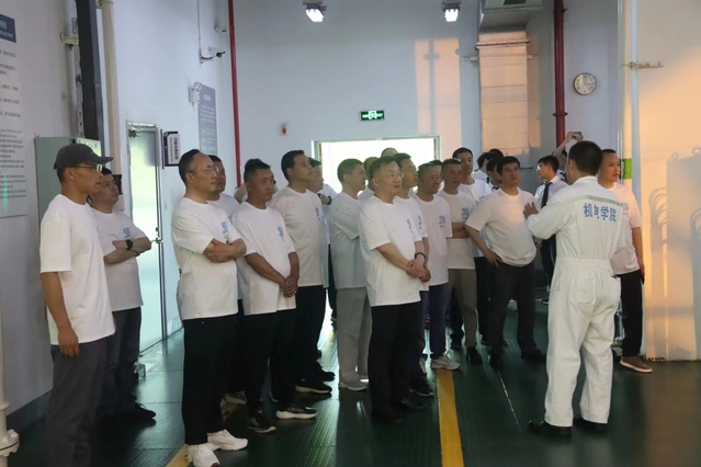 紧接着校友参观完校史馆后,又前往参观了船舶智能化机舱,在左财宝老师的带领下,校友们不禁赞叹如今的教学设备以及机舱内船舶主要机械与电气设备的现代化,对海院以及机电学院的蓬勃发展感到自豪与称赞。