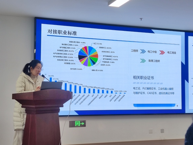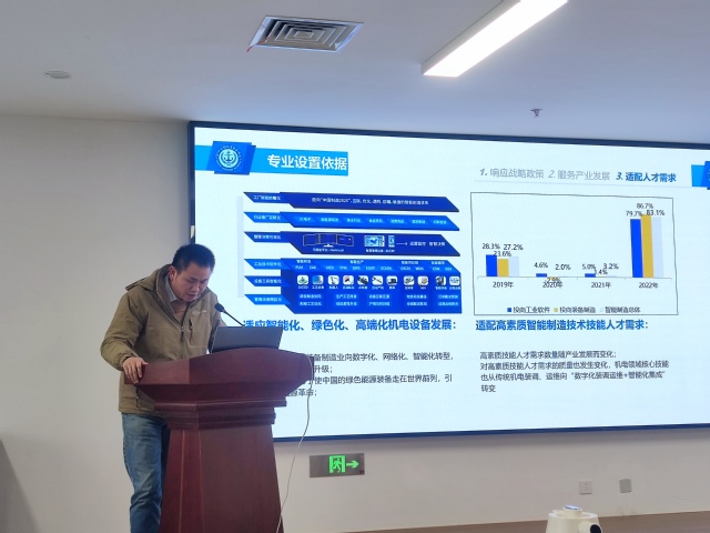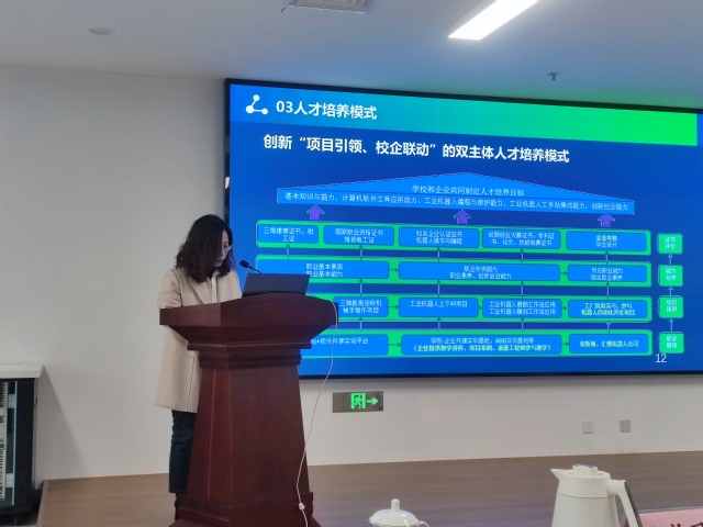 汇报环节,各专业负责人严格对标“说专业”评价指标,以“培养高技能人才”为核心目标,围绕专业设置依据、人才培养目标、专业课程体系改革与课程重构、专业教学改革、师资队伍建设、实践教学条件、质量与成效、问题与改进等八个维度,系统全面地呈现了各专业的建设情况与未来规划。