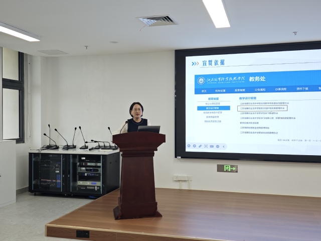 机电学院副院长孙方霞作教师教学规范宣贯,详细解读了《江苏海事职业技术学院教学组织与实施管理办法》。从教学计划执行、教学检查、学生考评、教学质量控制、教学违规行为的认定与处理等方面进行了深入剖析,要求全体教师严格遵守教学规范,不断提升教学质量。