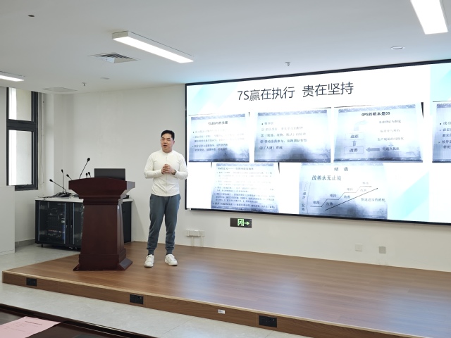 随后,学校三春辉餐饮叶玉虎总经理从7S精细化管理由来、7S精细化管理理论及概况、7S精细化管理实施路径、7S精细化管理主要成效、管理之美等5个方面对“7S”精细化管理经验进行了分享。
