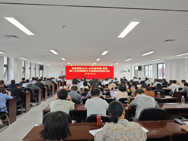 10月15日下午,机电学院在海立楼519会议室召开机电学院2025-2026学年第一学期第二次全体教职工大会暨全体党员大会。学院领导班子成员和全体教职工参加本次会议,会议由机电学院院长孙长飞主持。