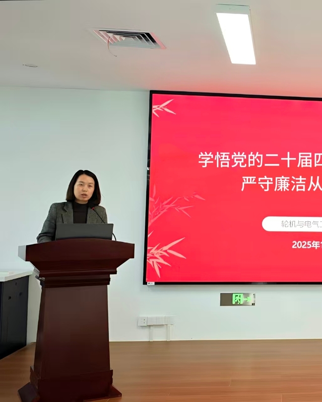 机电学院党总支副书记许高超作党风廉政专题报告。报告结合党的二十届四中全会精神核心要义,通过剖析典型案例敲响了廉洁警钟,要求全体教师要将廉洁从教融入教育教学全过程,营造风清气正的育人环境,推动清廉校园建设走深走实。