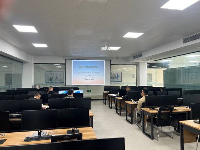 汤明老师则聚焦于电喷柴油机的控制系统,针对遥控系统的逻辑、MOP(主操作屏)的实际操作与参数调整等进行了专项讲解与演示,增强了学员们的实操应用能力。此外,培训特邀江苏远洋运输有限公司的朱晓亮轮机长,结合自身丰富的远洋实践经验,分享了多个典型的电喷柴油机故障案例,并引导学员进行深入分析与研讨,极大地提升了学员解决实际问题的能力。