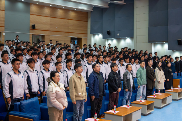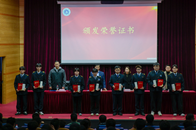 换届大会在庄严的国歌声中拉开序幕,全体与会人员肃立并高唱国歌。随后,第五届学生干部代表张龙旭、陈庆昊、江旭作述职报告,他们分别回顾了任期内的工作成果,从活动组织、服务同学、团队建设等多个维度分享工作心得,字里行间饱含着对学生工作的赤诚与眷恋,也展现了上一届学生干部求真务实的工作作风。他们的辛勤付出得到全院师生的高度认可。为表彰先进、树立榜样,学事办主任宗许宁宣读了《轮机与电气工程学院关于2024-2025学年度“机电先锋”的表彰决定》。获奖同学依次上台领取荣誉证书。大会号召全体同学以获奖同学为榜样,汲取奋进力量,在学习生活中勇攀高峰,争当新时代机电青年标杆。