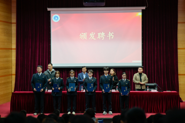 新老交替,薪火相传。党总支副书记许高超宣读《轮机与电气工程学院关于任命第六届团总支、助理团、半军管学生干部的决定》,明确了新一届学生干部的任职名单。随后,新一届学生干部代表有序上台领取聘书。这份沉甸甸的聘书不仅是一份荣誉,更是一份责任的象征。