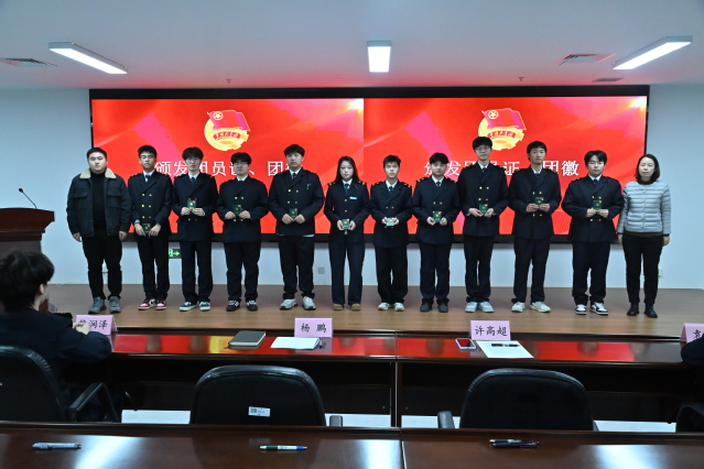 在全场瞩目下,党总支副书记许高超老师、团总支副书记杨鹏老师为新团员代表颁发团员证与团徽。熠熠生辉的团徽佩戴在胸前,不仅是一份光荣的象征,更是一份沉甸甸的责任。它标志着新团员们正式加入中国共产主义青年团这一先进组织,从此将以更高标准严格要求自己,在同学中发挥模范带头作用。