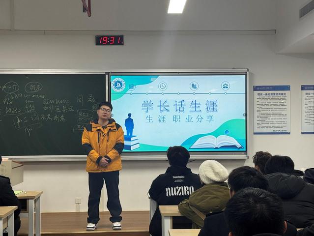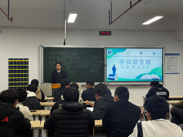为深化学生职业生涯规划教育,精准对接行业人才需求,帮助在校生明晰航运领域职业发展路径,轮机与电气工程学院于3月18日晚在海立楼605举办“学长话生涯”分享交流会。本次交流会邀请了我院轮机、船电专业的优秀毕业生周磊、吕文晋学长,以及24级卓越班实习归来的学长现场进行答疑解惑。我院轮机、船电专业学生参加了此次活动,聆听行业经验、汲取成长力量。