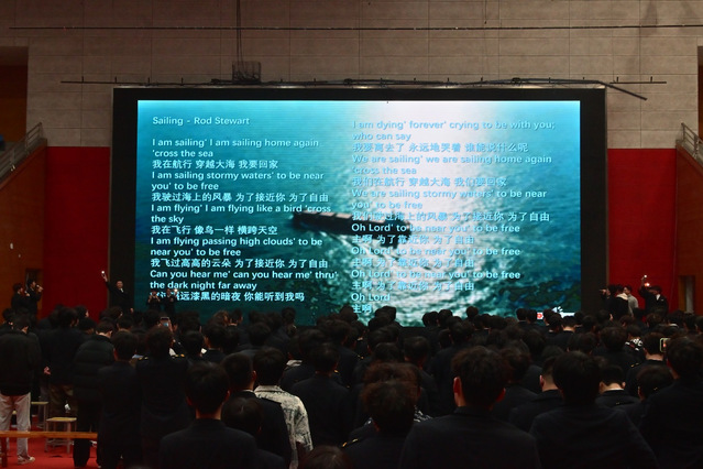 最后,全体同学齐声合唱海员经典歌曲《Sailing》,歌声深情嘹亮、饱含逐梦深蓝的理想,将现场氛围推向高潮。